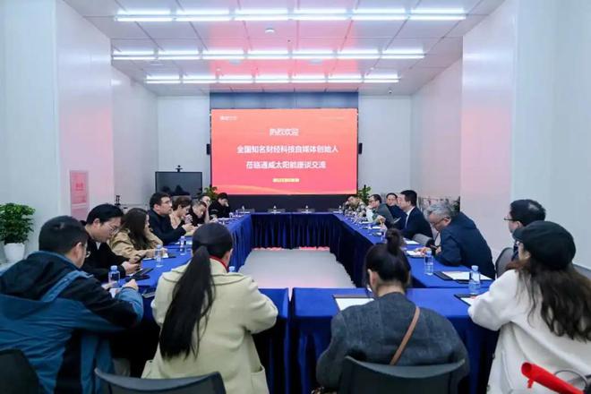 在此次调研走访中,调研团队还实地探访了通威太阳能(金堂)有限公司。走进其智能生产车间和太阳能电池片生产车间,一条条全自动智能制造生产线正高效运转,地面上,一个个酷似大型扫地机器人的机器正忙碌穿梭,负责各个工序的物料传输。据了解,截至目前,通威太阳能已拥有成都、眉山、金堂、通合、彭山及中威公司,与其他几个光伏生产基地相比,金堂基地的特别之处在于其首次运用了5G等通信技术。随后的交流座谈会上,财经科技大V们围绕行业现状、光伏智能制造的未来发展、环保与可持续发展等热门话题,与通威金堂公司相关负责人展开了深入而热烈的讨论。