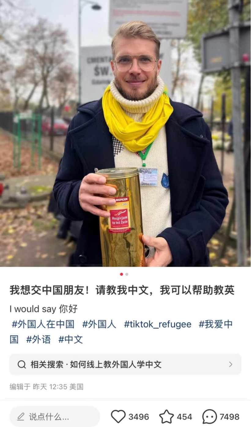 也有一些美国用户在小红书上表示,此举是为表达对美国政府针对Tiktok政策的不满。还有美国网友强调,他们“此行”是为了能够与中国网友增进沟通和了解,广交朋友,共享生活中的美好。