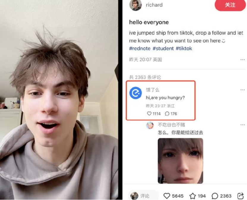 在不少海外网友笔记下方,“饿了么”热评“Are you hungry?”