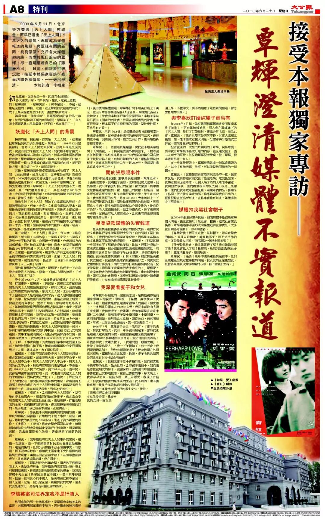1、多年来,关于我本人和“天上人间”的报道甚嚣尘上,这些媒体从未向我本人进行过采访,也没有一家媒体到访过“天上人间”现场取证,导致其所报道内容的虚假杜撰比比皆是,皆为网络抄袭,造成哗众取宠,引发社会舆论的不良影响,甚至撰文中所刊载我本人照片也误植我胞弟覃宏。新闻内容缺乏事实依据,完全有悖于新闻及媒体工作者的职业操守和职业道德。