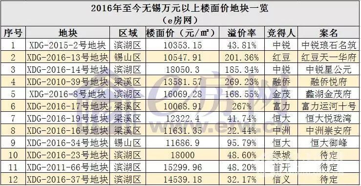 从2016年至今,无锡已拍出多幅地王项目,其中万元以上楼面地价地块就占了12幅,不少地块楼面地价不仅刷新区域内新高,甚至有地块楼面地价成为无锡新高。