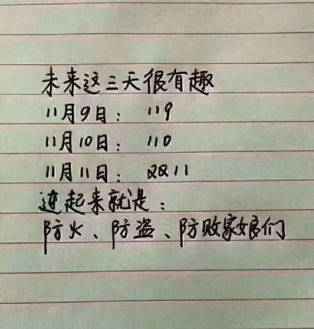 中国的网民段子手竟然完全漠视在11月9日之前,还有一个11月8日的记者节。想当年压根就没有双11什么事,那时的段子是这样写的:“防火、防盗,但要先从防记者起。”当年身为一名有理想有抱负的年轻新闻工作者,我对这个段子是不爽加不屑,现在回想起来,“防记者”的段子从另一个侧面来看,也算是反映出社会环境里记者的受重视程度。