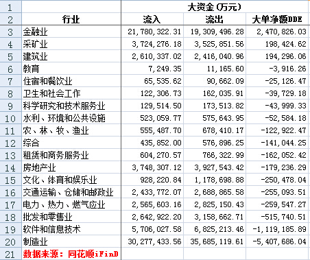 同花顺数据统计,今日两市大单净额净流出570亿元,较前日有所减少。