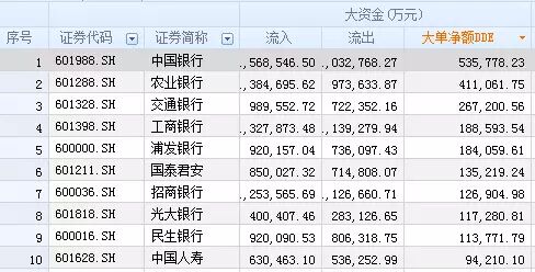 行业来看,资金流入集中在金融行业,也就是银行、券商、保险股。今日相关个股也表现不俗。资金流入靠前的是中国银行、农业银行、交通银行、工商银行。