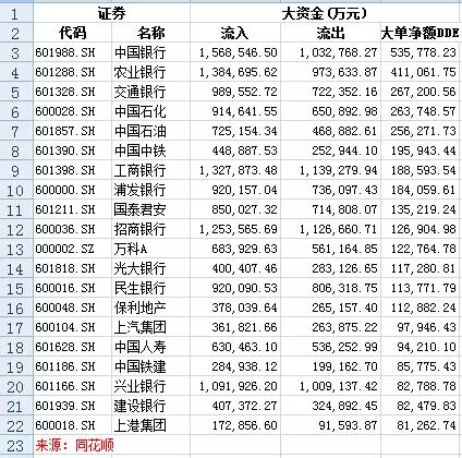 整体个股资金流入来看,中、农、交两市流入居前,前五中中石化、中石油占两席。