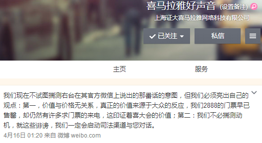 喜马拉雅FM官方微博当晚进行了回应。