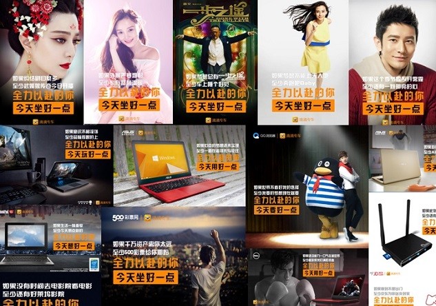 接着滴滴团队没有停止,以Social、PR联合发起猛烈的情感攻势。围绕核心广告语“把车外的留在车外,把自己的还给自己”、“逞强的背后都是爱”进行创意包装,发起传播活动。最终,滴滴体海报引起了韩红、范冰冰、黄晓明等26位一线明星和京东、华为、联想等52家知名企业的响应,大大提升了滴滴专车的品牌认知度和好感度,创下多项营销界的记录。