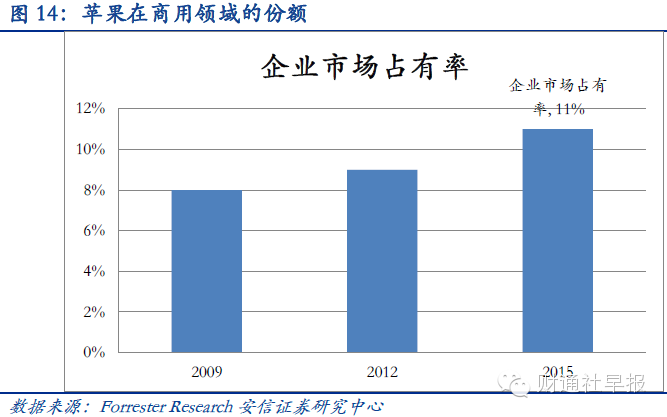 3)苹果采用硬件“蠕虫战略”与谷歌软件“蠕虫战略”对抗,渗透更多数据金矿。4)苹果将进入企业市场扩大商用领域份额,带来更多硬件机会。