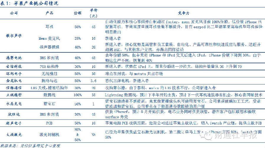 4)蓝宝石、大屏幕、carplay和指纹封测将给供应链上大陆厂商带来新机会。