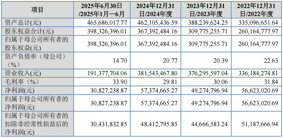 报告期内,公司营业收入分别为33,618.43万元、37,629.56万元、38,154.35万元和19,137.77万元,扣非归母净利润分别为5,118.77万元、4,466.66万元、4,841.28万元和3,043.18万元。