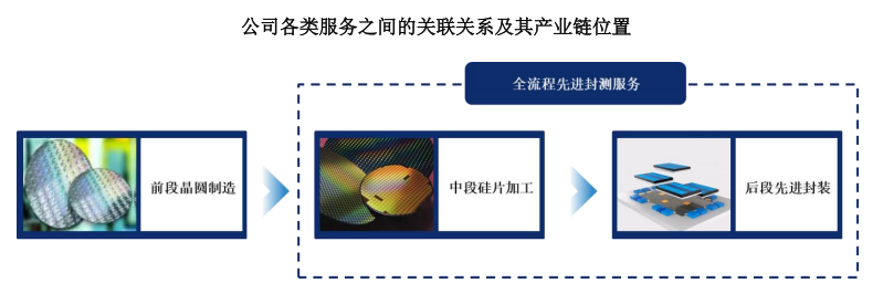 公司起步于先进的 12 英寸中段硅片加工,逐步构建起了覆盖中段硅片加工、晶圆级封装(WLP)、芯粒多芯片集成封装的全流程先进封测服务体系,以自主创新的技术成果,填补了中国大陆高端封测领域的多项空白。