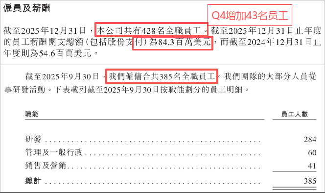 截至去年底,MiniMax的全职员工人数为428名,员工薪酬开支8430万美元。