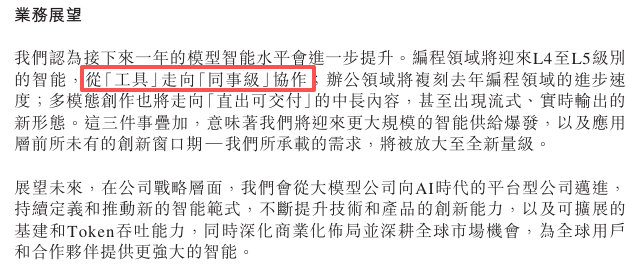 1、接下来一年,在编程领域,大模型将迎来L4至L5级别的智能,从“工具”走向“同事级”协作。