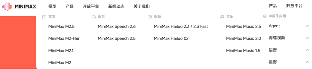 目前,MiniMax旗下开发的模型涵盖了文本、语音、视频及音乐,并研发了AI原生应用海螺视频、星野等。