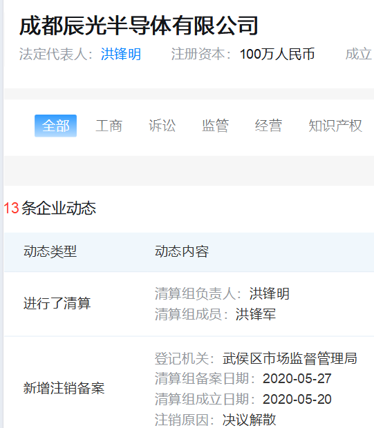 早先,二人共同创立了成都辰光半导体有限公司,注册地址为成都武侯区,该公司初期主要从事半导体零售业务。2016年,成都芯翼正式成立,也成为其日后商业版图的核心载体。2020年8月,成都辰光半导体正式注销,同年成都瓴科微电子有限责任公司成立,2023年瓴科微(上海)正式成立。这一路走来,其商业布局也完成了从半导体销售到芯片研发设计的转型。