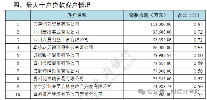 根据城商行经营定位,跨区域放贷需严格遵循监管规定,而该行前十大客户中的几笔异地大额贷款,则暴露出天府银行显然存在着异地授信甚至大额授信的事实,极有可能存在突破监管限制、甚至违规开展异地业务的情况。