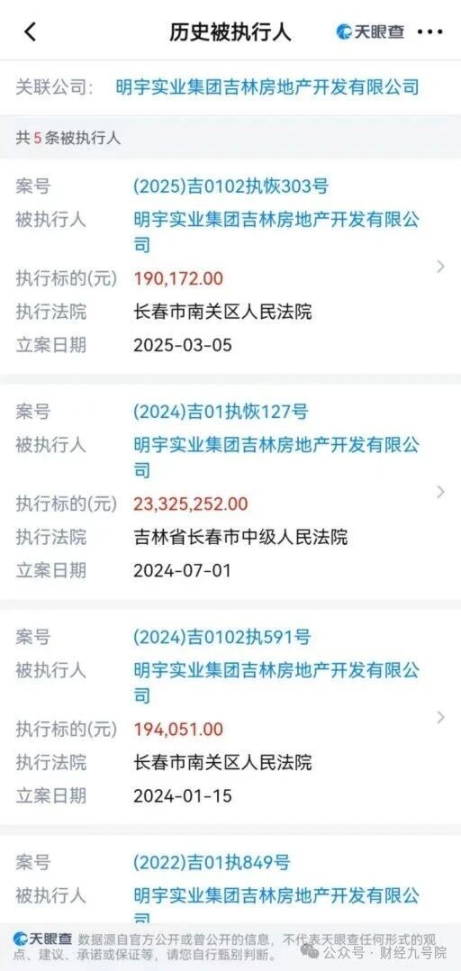 尽管天府银行2025年年报还未披露,但从目前的公开信息看,明宇实业集团吉林房地产开发有限公司2024年放出去的这笔7亿多的贷款想要追回恐怕是难了。