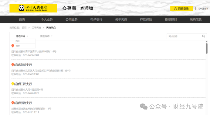 而天府银行总部位于四川,据该行官网显示,天府银行的经营网点目前仅分布于四川省内和贵州的贵阳一市,在吉林、天津等地并没有分支机构。