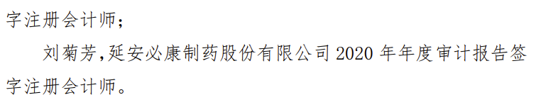 永拓所为延安必康 2019 年度和2020 年度财务报表提供审计服务,对延安必康 2019 年度财务报表出具了标准无保留意见的审计报告,签字注册会计师是王伟雄、王永平;对延安必康2020年度财务报表出具了带强调事项段的无保留意见审计报告,签字注册会计师是徐冉、刘菊芳。