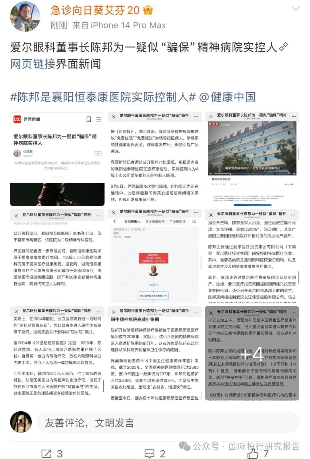 艾芬医生挺身而出:爱尔眼科控制人陈邦疑似控制骗保精神病医院!3.5亿精神病人大生意!爱尔眼科吴士君以“信号不好”“正在办登机”为由,挂断了电话