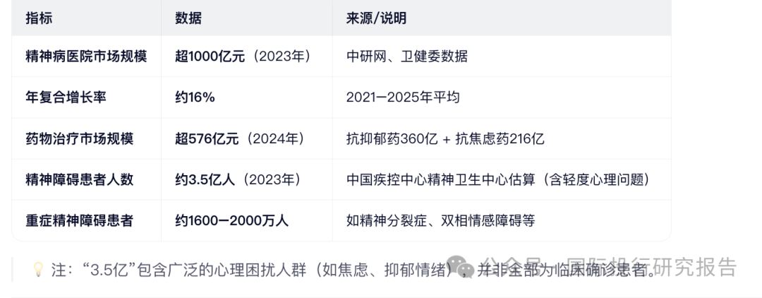 2 、精神病已经是中国最大的市场之一,公开数据显示,目前约 3.5 亿人有精神病障碍,市场规模达到 1000 亿。