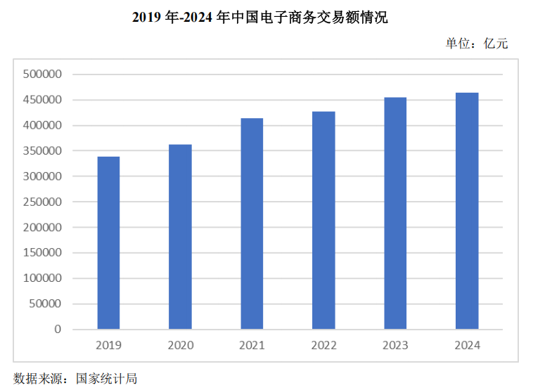 从需求端展望,包装用纸市场潜力依然广阔。2024年全国纸及纸板消费量为13634万吨,人均消费量96.83千克,远低于欧美国家150-300千克的水平。同时,我国电商产业持续高速发展,2024年交易额达46.41万亿元,较2019年增长37.01%。