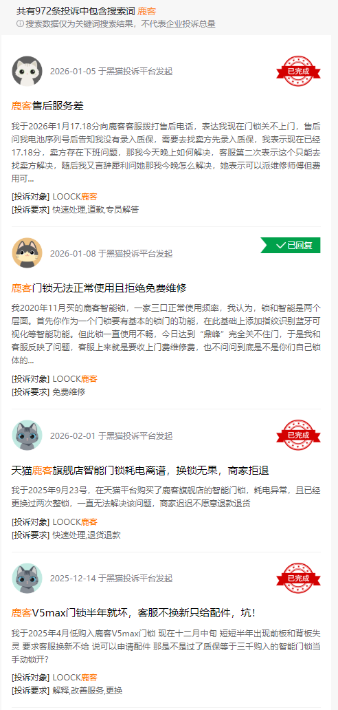 还有一个问题是,在第三方投诉平台上,有大量关于鹿客产品的投诉,反映了其在产品质量与服务闭环上可能存在短板。