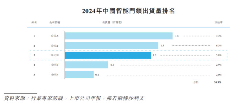 但其实,它已经是智能锁出货量全球排行第四的企业,在中国则是排到了第三。
