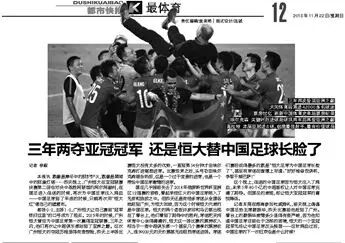 《都市快报》:还是恒大替中国足球长脸了。——“还是”二字让国足的……?