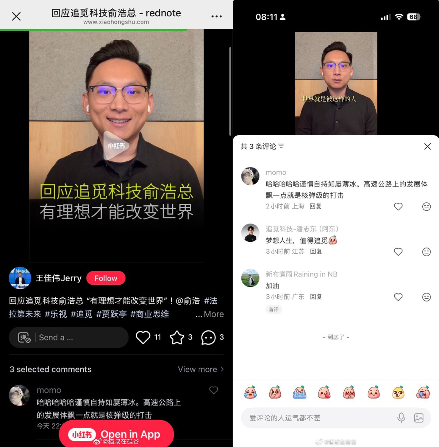 贾跃亭外甥点赞