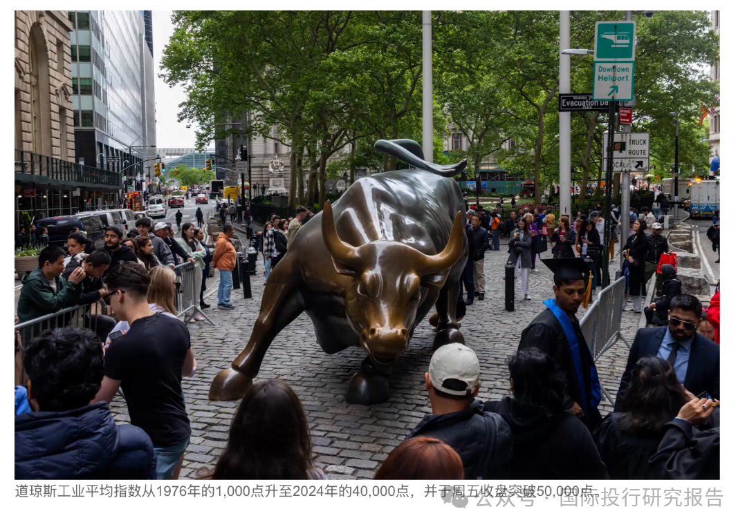 道琼斯工业平均指数从1976年的1,000点升至2024年的40,000点,并于周五收盘突破50,000点。