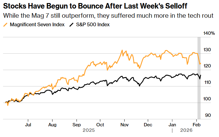 Wilson 的观点或许能让那些开始质疑人工智能领域巨额投资回报的投资者感到安心。上周,纳斯达克 100 指数遭遇了自去年 12 月以来最大的单周跌幅,那些被认为可能受到人工智能冲击的股票在 Anthropic 新工具发布后纷纷下跌。
